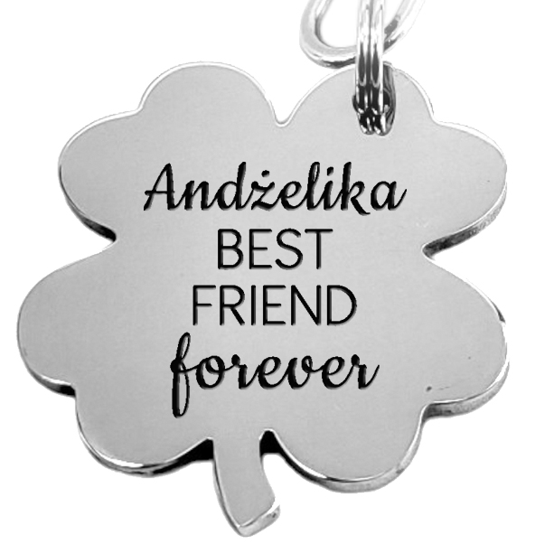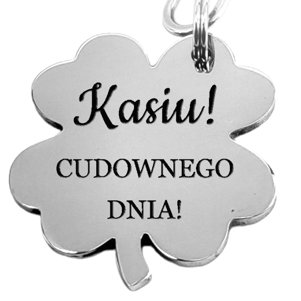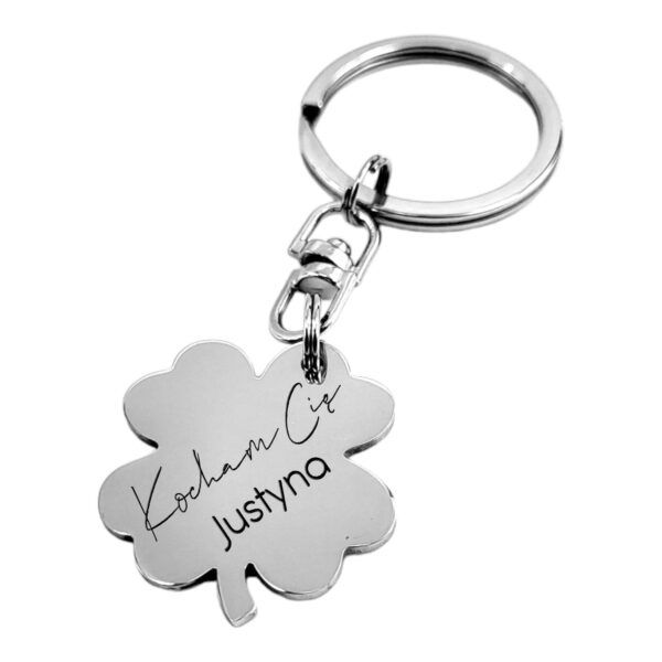 Ten brelok w kształcie czterolistnej koniczynki z grawerem to drobiazg, który przynosi radość i pozytywną energię każdego dnia.