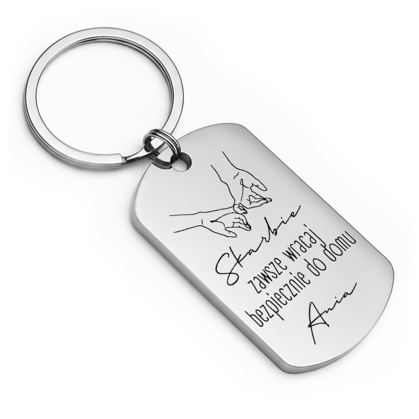 Szukasz prezentu, który wyrazi wdzięczność, miłość lub po prostu dobre słowo? Ten brelok z grawerem dedykacji to wyjątkowa pamiątka, która zawsze będzie przypominać o osobie, od której pochodzi. Idealny prezent dla Dziadka, Babci, Taty, Mamy lub każdego, komu chcesz powiedzieć, że jest wyjątkowy.