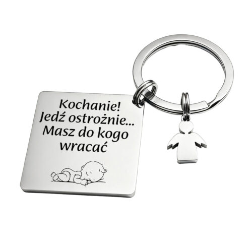 Zawieszony mały aniołek symbolizuje opiekę i szczęście, czyniąc z breloka nie tylko prezent, ale i osobistą pamiątkę pełną emocji.