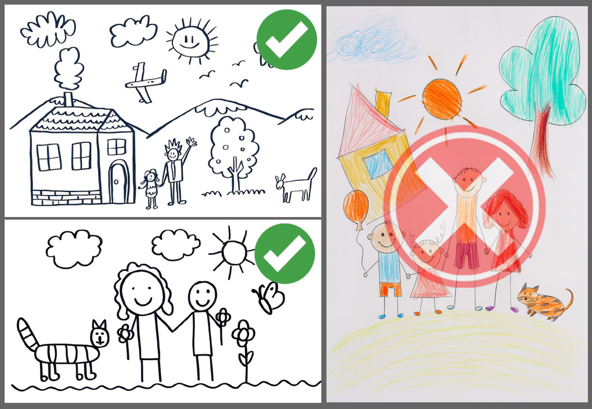 🔹 Rysunek musi być na jednolitym, najlepiej białym tle oraz narysowany jednym, najlepiej czarnym, kolorem