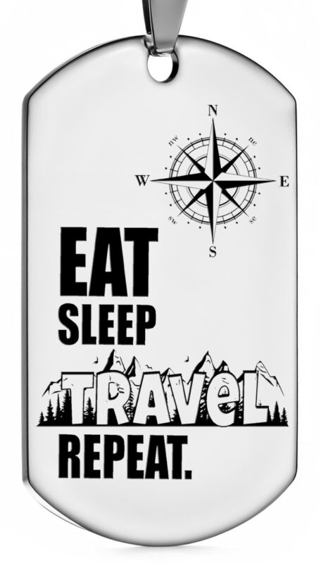 Nieśmiertelnik dla Podróżnika ze stali szlachetnej z gotowym wzorem inspirowanym podróżami.